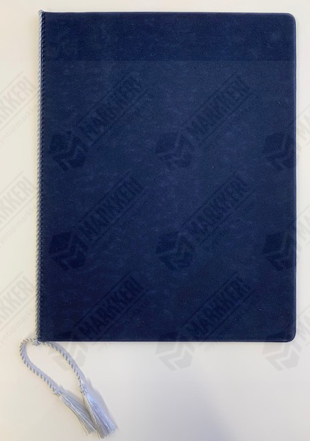 Adressikansio nukkapintainen. Kulta tai hopea nauhalla